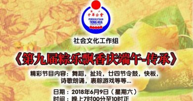 欢迎有意参加“粽子设计与摆设比赛”的公众,致电新山中华公会秘书处:07-2788999。